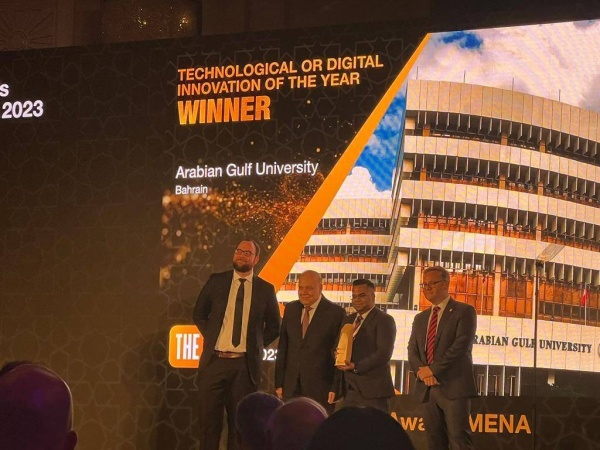 فازت جامعة الخليج العربي بجائزة تايمز للتعليم العالي في الشرق الأوسط وشمال أفريقيا 2023 TIMES HIGHER EDUCATION MENA، عن فئة أكثر جامعة مبتكرة في تكنولوجيا التعليم الرقمي في الشرق الأوسط. و أعلنت لجنة التحكيم أمس في الحفل الذي عقد خلال قمة جامعات منطقة الشرق الأوسط وشمال أفريقيا المنعقدة في أبو ظبي، تفوق جامعة الخليج العربي على 8 جامعات عربية تأهلت للقائمة النهائية عن هذه الفئة وهم: جامعة قطر، جامعة أبوظبي، جامعة لبنان الأمريكية، جامعة الخليج الطبية، جامعة نيويورك في أبوظبي، الجامعة البريطانية في دبي، والجامعة الحديثة للأعمال والعلوم.