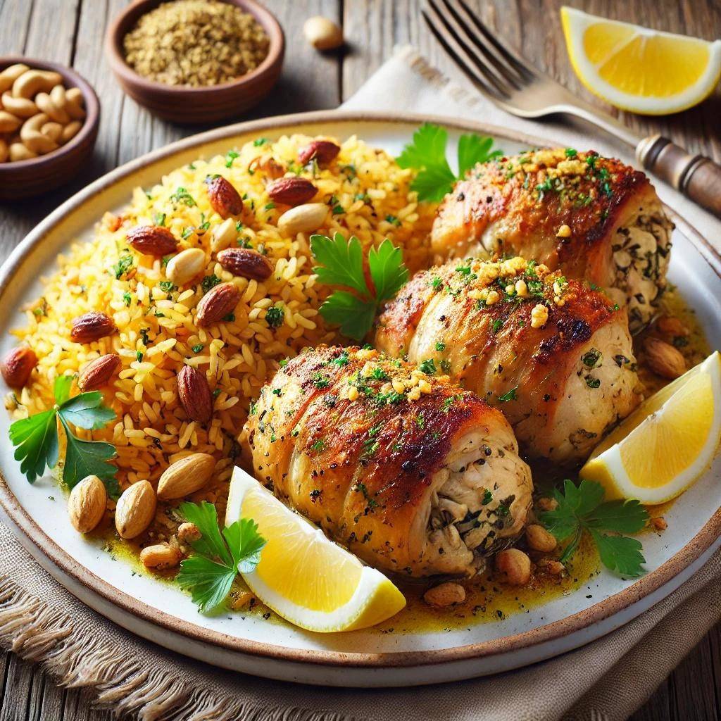 زينه بالمكسرات المحمصة والبقدونس المفروم.