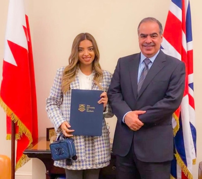 وأكدت أنها "بعد نيلها هذا التحصيل الأكاديمي من جامعة شيفيلد التي تعد واحدة من أهم وأعرق الجامعات في العالم والتي خرجت اشهر العلماء والكتاب والسياسيين، ستكرس جهودها لخدمة وطنها مملكة البحرين في مجال تخصصها".