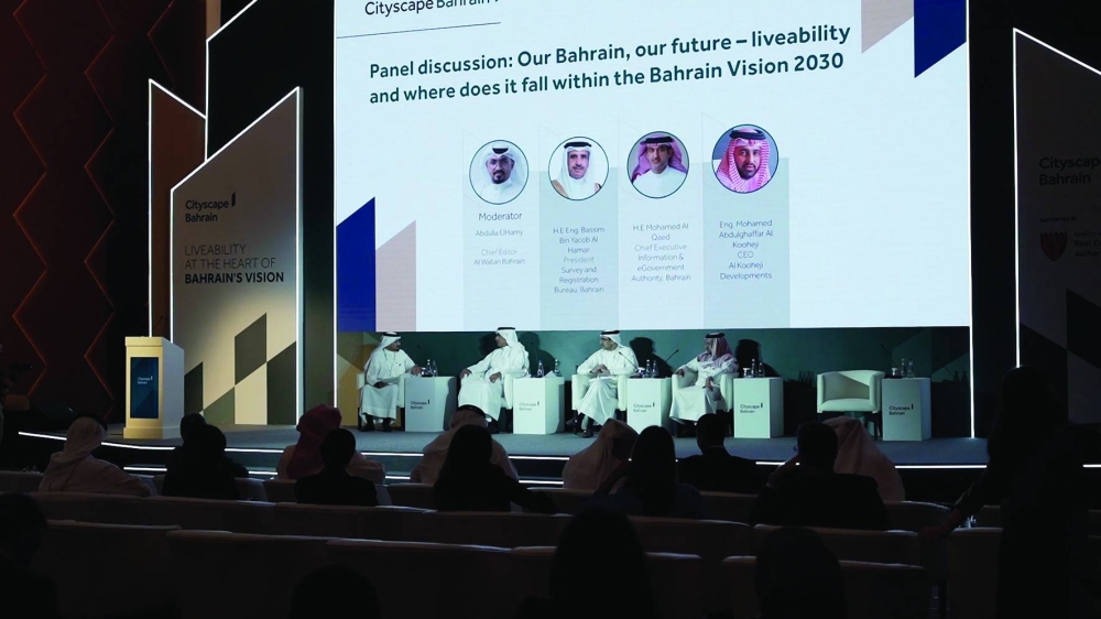 وحملت الجلسة الحوارية بعنوان: «جودة الحياة ومفهومها في رؤية البحرين 2030» وشارك في إثراءها كل من: رئيس جهاز المساحة والتسجيل العقاري باسم الحمر، والرئيس التنفيذي للحكومة الإلكترونية محمد القائد، والرئيس التنفيذي لشركة الكوهجي للتطوير العقاري محمد الكوهجي، وأدارها رئيس تحرير «الوطن» عبدالله إلهامي.