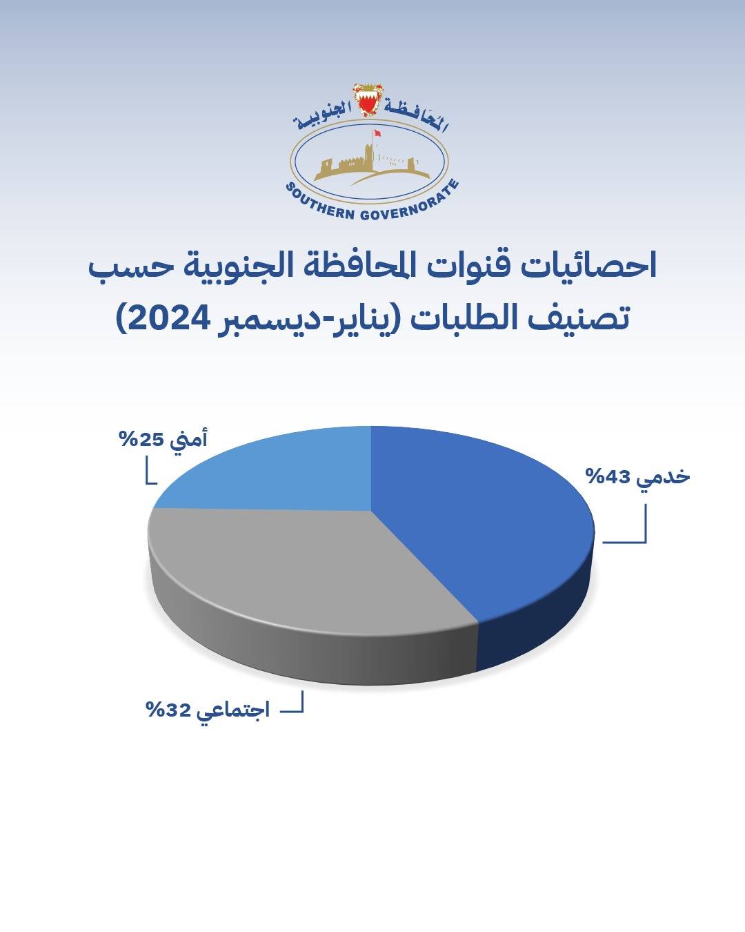 وأكد المحافظ، بأن الفريق المختص بقسم الشكاوى والمقترحات يقوم بشكل مستمر بإعداد تقرير مفصّل عن مجموع الشكاوى والمقترحات والطلبات الواردة عبر قنوات المحافظة، حيث بلغ مجموع ذلك حتى نهاية عام 2024م، إلى نحو 3367 شكوى وطلب ومقترح، في حين تنوعت القنوات المستقبلة لهذه الطلبات والشكاوى والمقترحات الواردة كالتالي: برنامج «تواصل» بمجموع بلغ 120 شكوى وطلب ومقترح، كما تلقت المحافظة 1023 مكالمة واستفسار عن طريق الاتصال الهاتفي المباشر لمركز خدمة العملاء، 1906 شكوى وطلب عبر تطبيق "الجنوبية"، و 216 من الاستفسارات والمقترحات الواردة عبر البريد الإلكتروني، أما مجلس المحافظة الأسبوعي فقد استقبل عدد 102 شكوى وطلب.