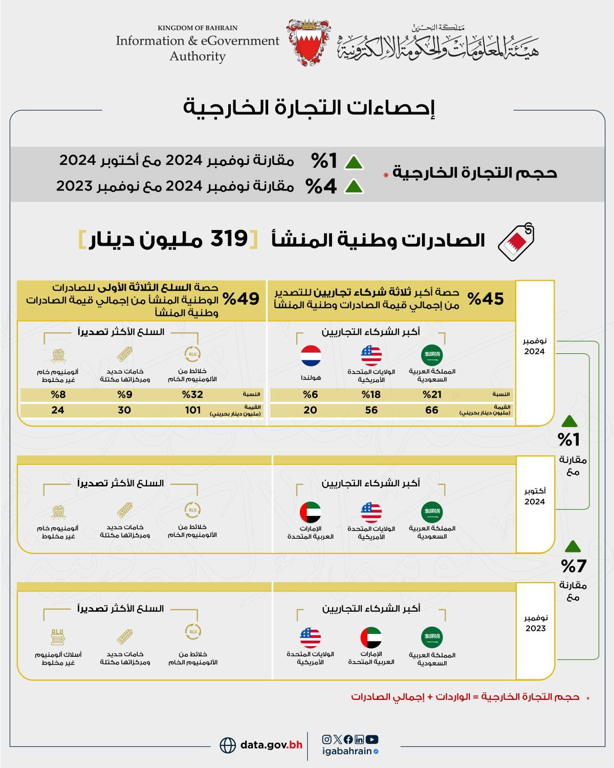 لمزيد من التفاصيل يرجى زيارة صفحة التجارة الخارجية على بوابة البحرين للبيانات المفتوحة:https:www.data.gov.bh