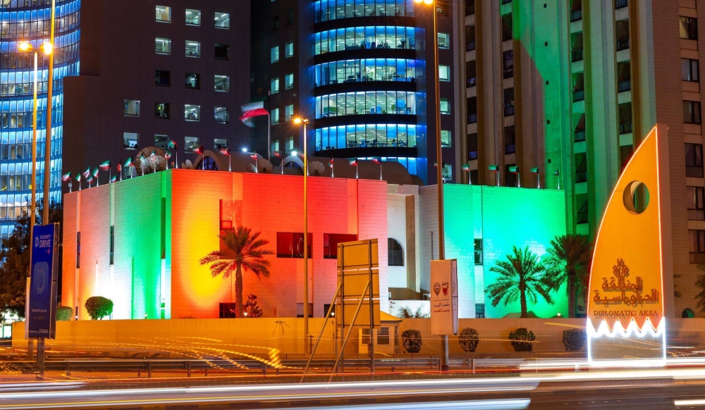 البحرين تتزين بالأزرق احتفاءً بالعيد الوطني الكويتي وذكرى يوم التحرير