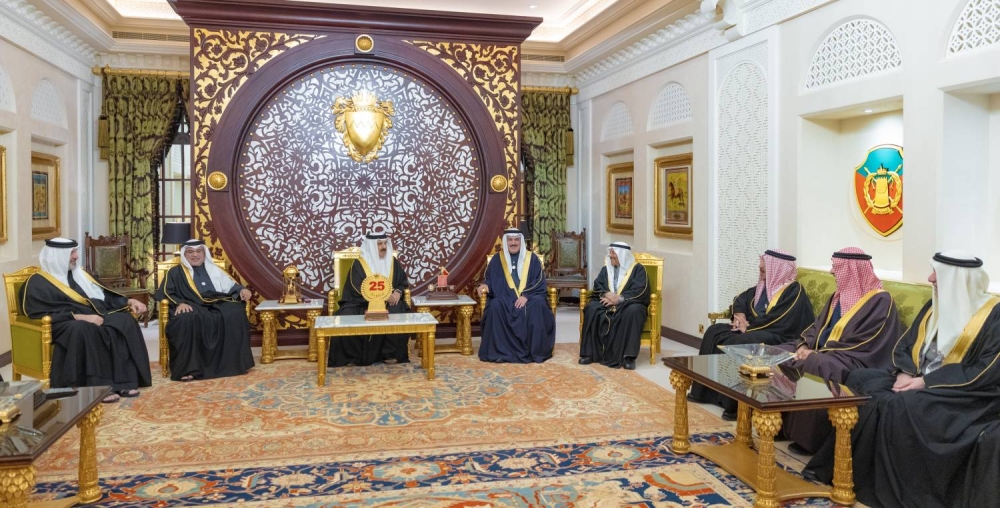 استقبل حضرة صاحب الجلالة الملك حمد بن عيسى آل خليفة، ملك البلاد المعظم، بحضور صاحب السمو الملكي الأمير سلمان بن حمد آل خليفة، ولي العهد رئيس مجلس الوزراء، في قصر الصخير مساء اليوم، أحمد بن سلمان المسلم رئيس مجلس النواب، وعلي بن صالح الصالح رئيس مجلس الشورى، والشيخ خالد بن علي بن عبدالله آل خليفة، نائب رئيس المجلس الأعلى للقضاء رئيس محكمة التمييز، حيث رفعوا إلى جلالته خالص التهاني والتبريكات وأطيب التمنيات بحلول شهر رمضان المبارك، ضارعين إلى المولى العلي القدير أن يحفظ جلالته ويرعاه، وأن يعيد هذه المناسبة الجليلة على جلالته بدوام الصحة والسعادة، وعلى مملكة البحرين وشعبها العزيز بالخير والبركات والمسرات.