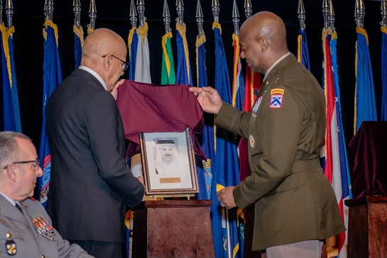 وبهذه المناسبة ألقى سعادة الدكتور عبداللطيف الزياني كلمة أعرب فيها عن اعتزازه بتكريمه من قبل كلية القيادة والأركان العامة في ليفنوورث، وانضمامه إلى قاعة المشاهير في الكلية، باعتباره إنجازًا مهمًا في مسيرته المهنية وتجسيدًا للقيم والخبرات التي شكلت وأثرت في تلك المسيرة.