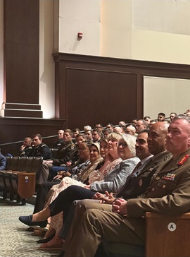 حضر الحفل معالي الشيخ عبدالله بن راشد آل خليفة سفير مملكة البحرين لدى الولايات المتحدة الأمريكية، والعميد جاسم عبدالله الجودر الملحق العسكري بسفارة المملكة في واشنطن، والسفير طلال عبدالسلام الأنصاري مدير عام شؤون وزارة الخارجية، والسفير سعيد عبدالخالق رئيس قطاع التنسيق والمتابعة، وعدد من كبار القادة العسكريين والدارسين في الكلية وعدد من الدبلوماسيين العاملين في سفارة المملكة في واشنطن.