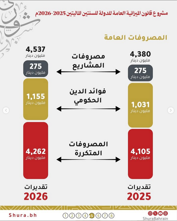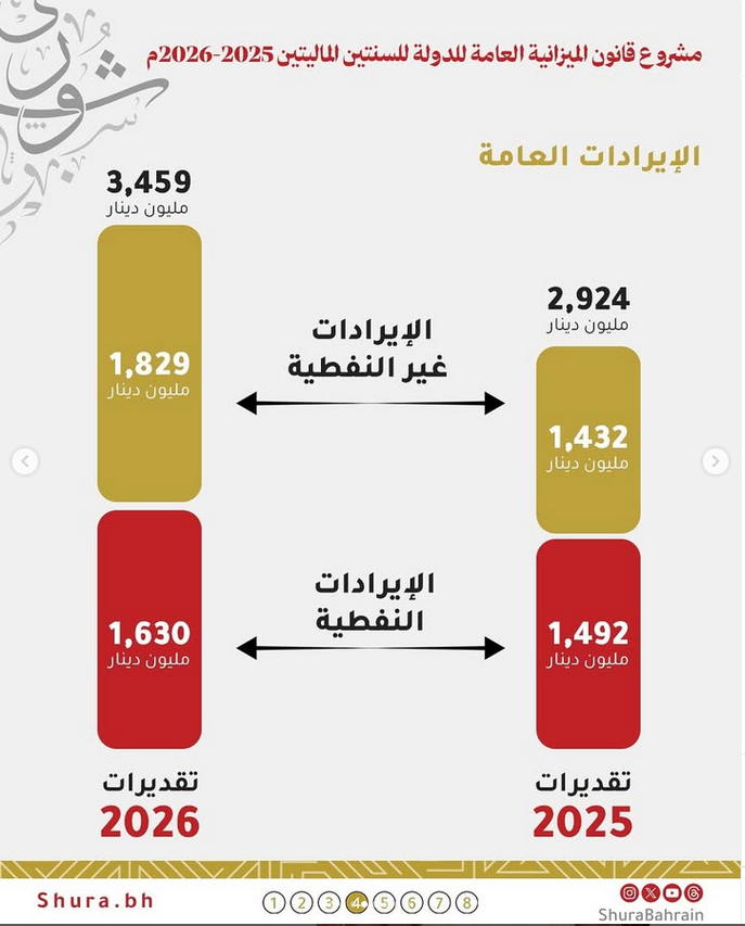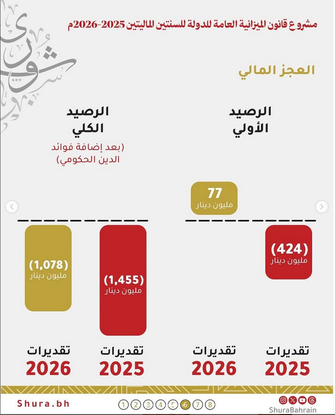 وصادق حضرة صاحب الجلالة الملك حمد بن عيسى آل خليفة ملك البلاد المعظم حفظه الله ورعاه، وأصدر قانون رقم (11) لسنة 2025 باعتماد الميزانية العامة للدولة للسنتين الماليتين 2025 و2026، وذلك بعد إقرار مجلس الشورى ومجلس النواب.