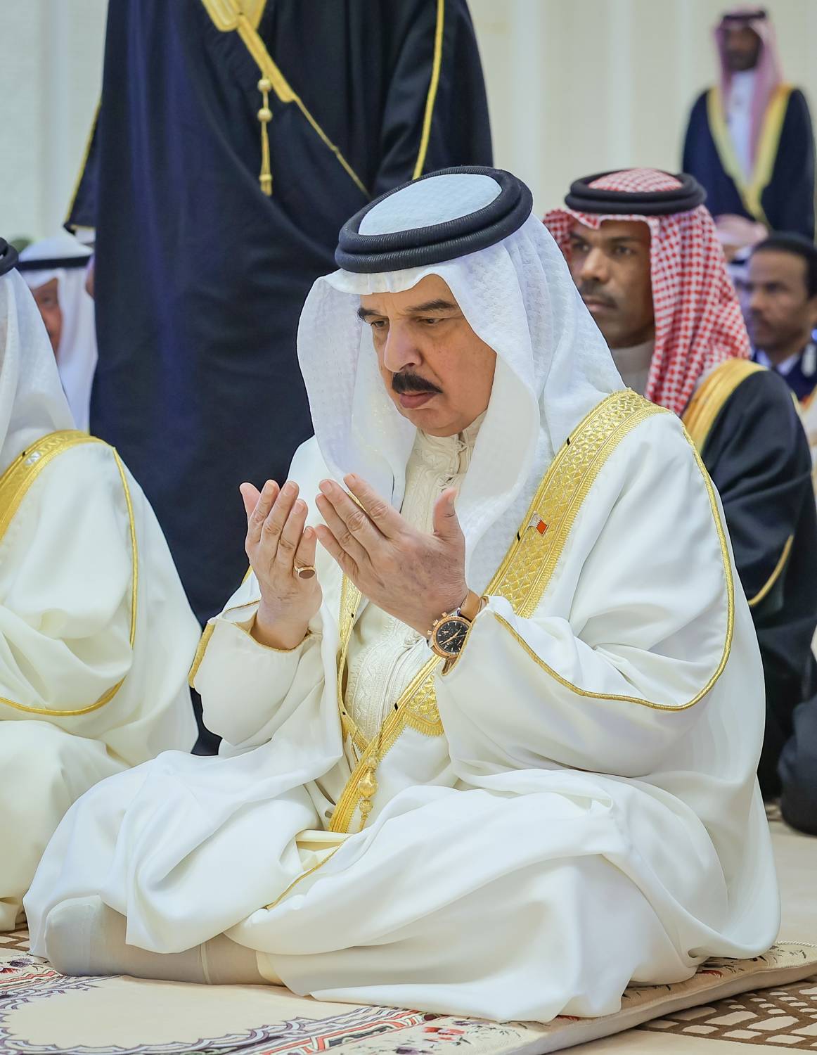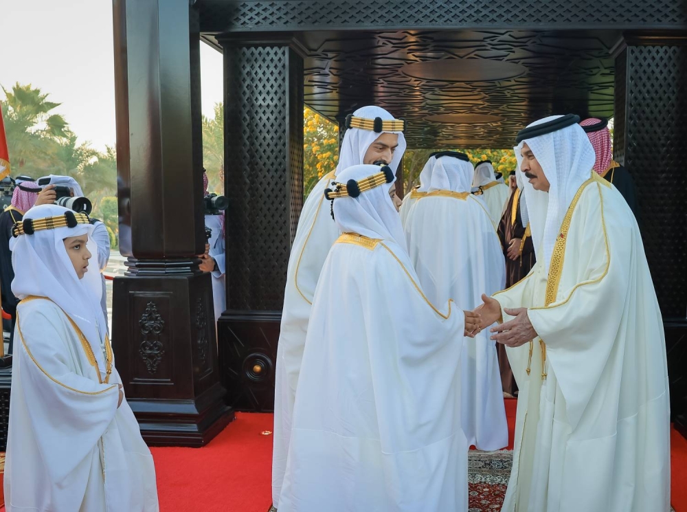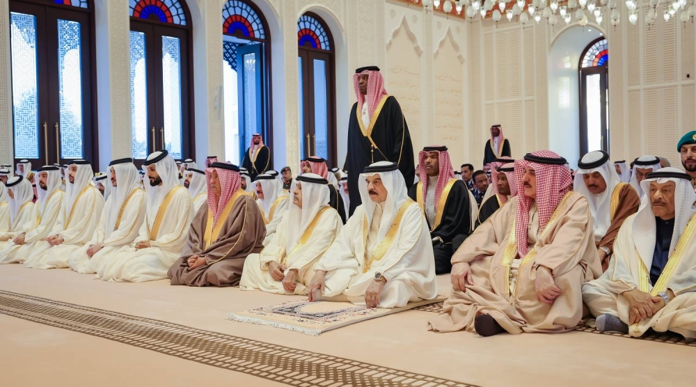 وبعد انتهاء الصلاة، تبادل حضرة صاحب الجلالة الملك المعظم حفظه الله ورعاه مع الحضور التهاني والتبريكات بعيد الفطر السعيد ، شاكرًا تهانيهم وتمنياتهم الطيبة، وهنأ جلالته شعب البحرين الكريم بعيد الفطر المبارك، سائلا المولى العلي القدير أن يتقبل من الجميع صالح الأعمال، وأن يعيد هذه المناسبة الكريمة على مملكة البحرين وأبنائها الأعزاء بوافر الخير واليمن والبركات وعلى الأمتين العربية والإسلامية بالعزة والرفعة والسؤدد.