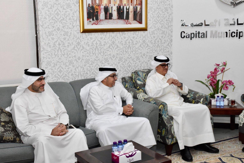 جاء ذلك خلال استقبال مجلس أمانة العاصمة في مقره بالزنج وزير شؤون البلديات والزراعة وائل المبارك، يرافقه وكيل الوزارة لشؤون البلديات الشيخ محمد بن أحمد آل خليفة، حيث كان في استقبالهم رئيس المجلس صالح طرادة، ونائب رئيس المجلس د.خلود القطان، وأعضاء المجلس، وذلك لتقديم التهنئة بمناسبة عيد الفطر المبارك.