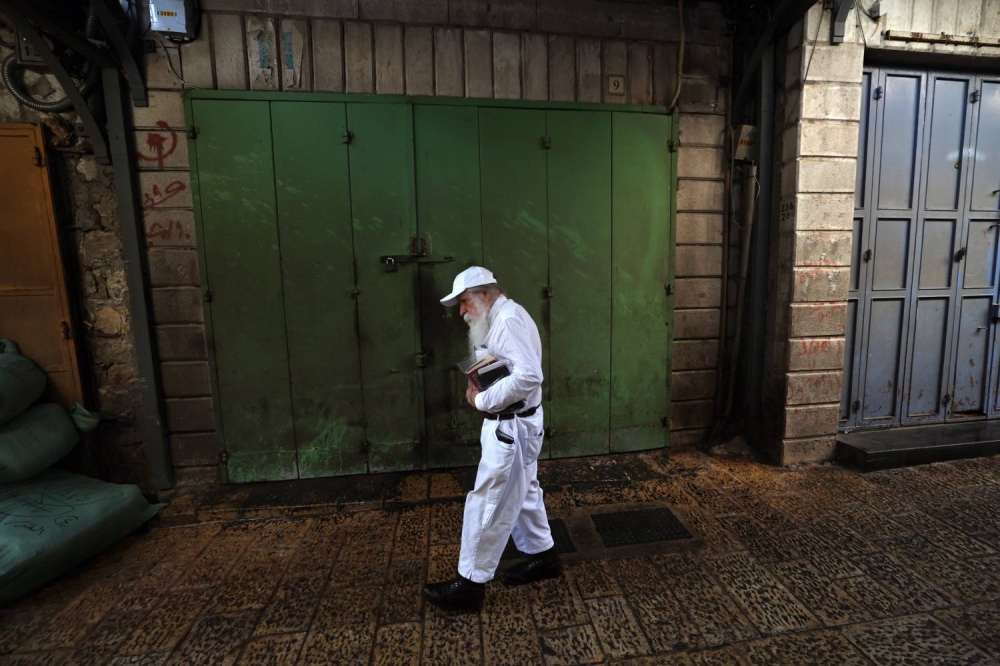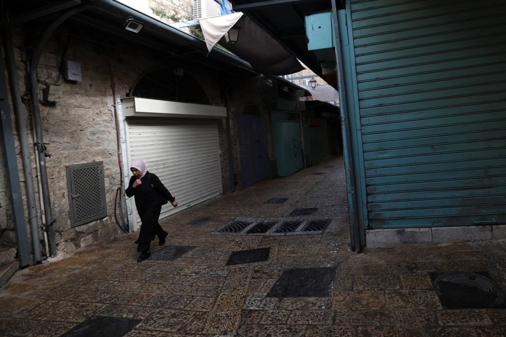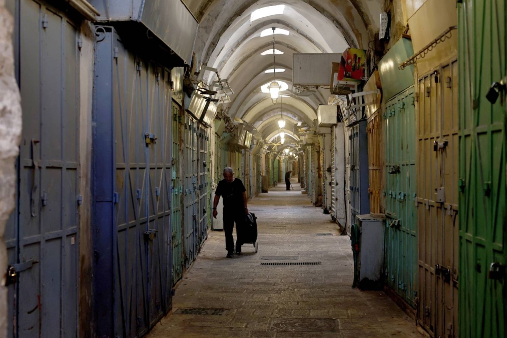 «epa» | عمَّ إضراب شامل المحافظات الفلسطينية، اليوم (الاثنين)، رفضًا للعدوان الإسرائيلي المستمر على قطاع غزة، وللمطالبة بوقف المجازر والقصف الذي يستهدف المنازل الآمنة، المستشفيات، ومراكز الإيواء.