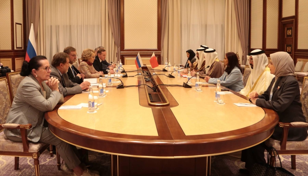 جاء ذلك خلال اجتماع مشترك بين رئيس مجلس النواب وفالنتينا ماتفيينكو، رئيسة المجلس الفيدرالي للاتحاد الروسي، وذلك على هامش مشاركة وفد الشعبة البرلمانية لمملكة البحرين في أعمال الجمعية العامة الـ 150 للاتحاد البرلماني الدولي، المنعقدة بمدينة طشقند في جمهورية أوزبكستان.