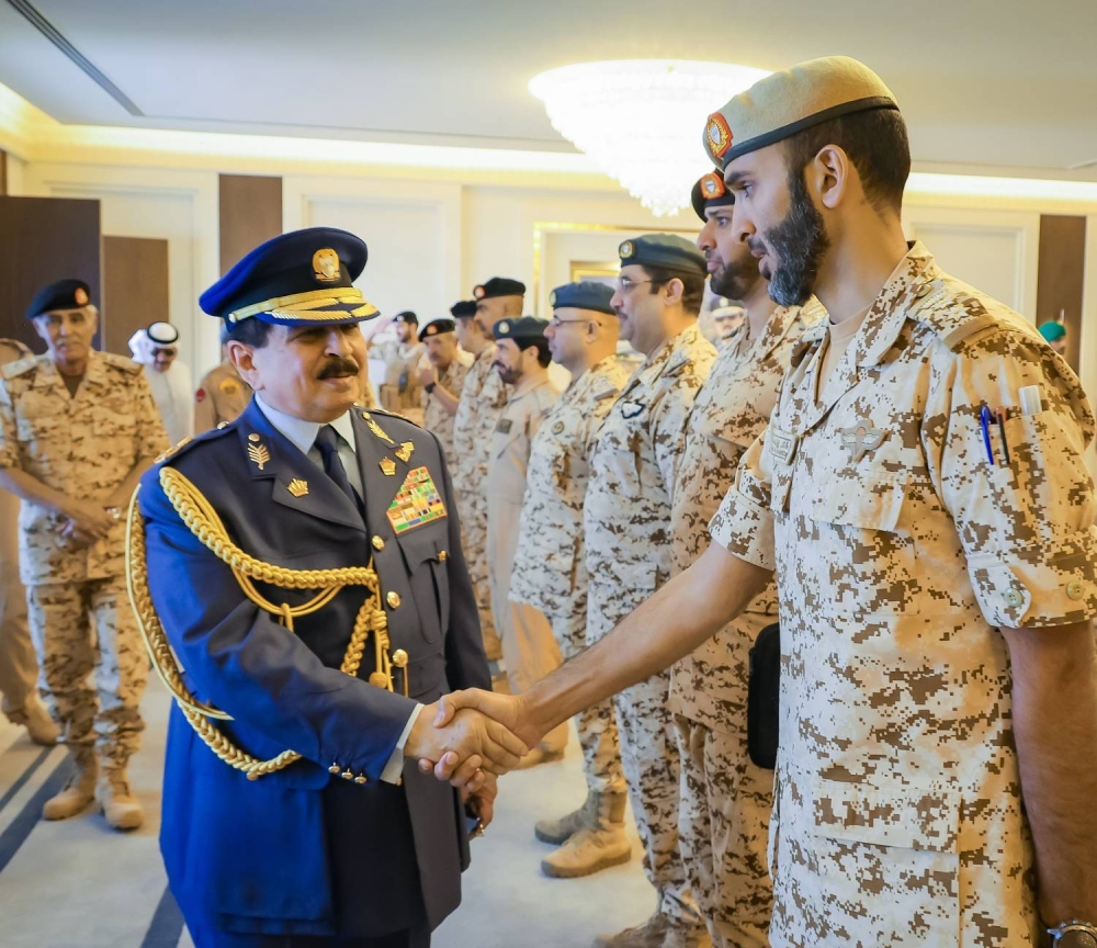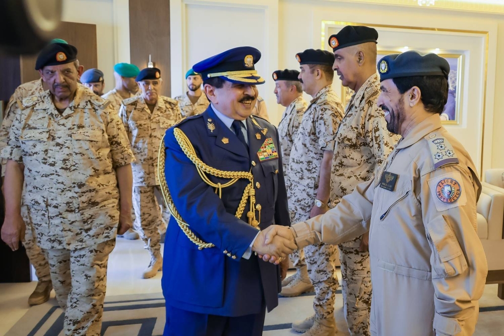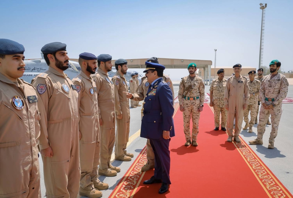 وأعرب جلالته أيده الله ورعاه عن تقديره للجهود القيمة والمثمرة التي يبذلها رجال سلاح الجو الملكي البحريني الشجعان، وما يتسمون به من جاهزية قتالية ومهارة رفيعة، متكاتفين صفًا واحدًا، ضمن العمل المشترك مع أشقائهم من مختلف أسلحة ووحدات قوة دفاع البحرين البواسل لأداء رسالتهم الوطنية السامية دفاعًا عن الوطن ومسيرته الحضارية المباركة وأمن مواطنيه الكرام، بروح العزيمة الرفيعة التي عهدناها منهم دائمًا.