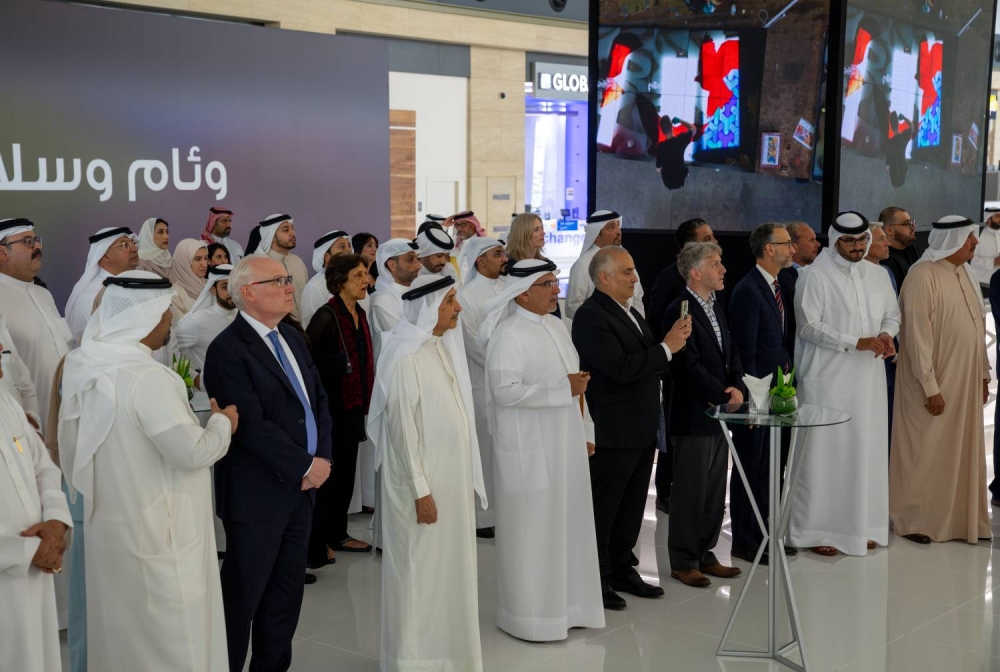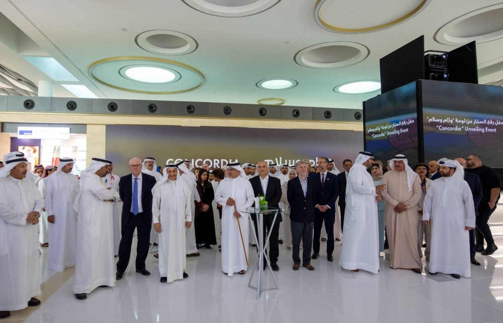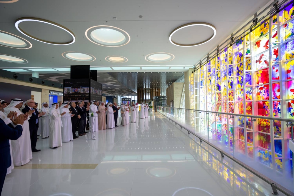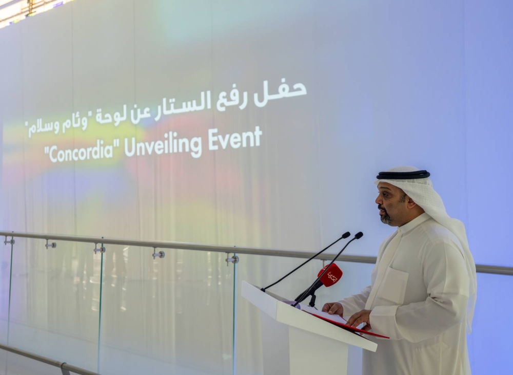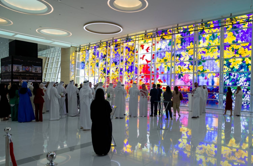 كما تضمن الحفل عرض فيديو تعريفي عن لوحة"وئام وسلام"، التي تُعد من أكبر تركيبات الزجاج المعشق في المنطقة، حيث تبلغ أبعادها 17 مترًا ارتفاعًا و34 مترًا عرضًا، بمساحة إجمالية تصل إلى 578 مترًا مربعًا.
