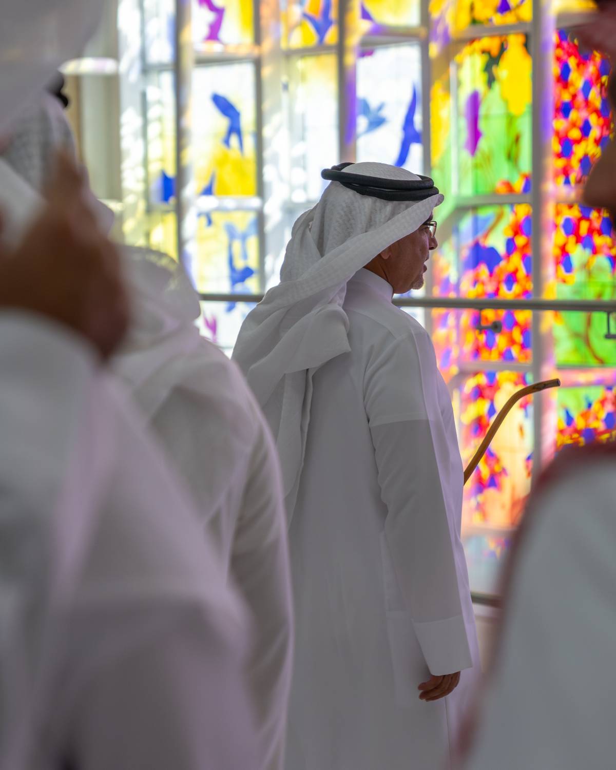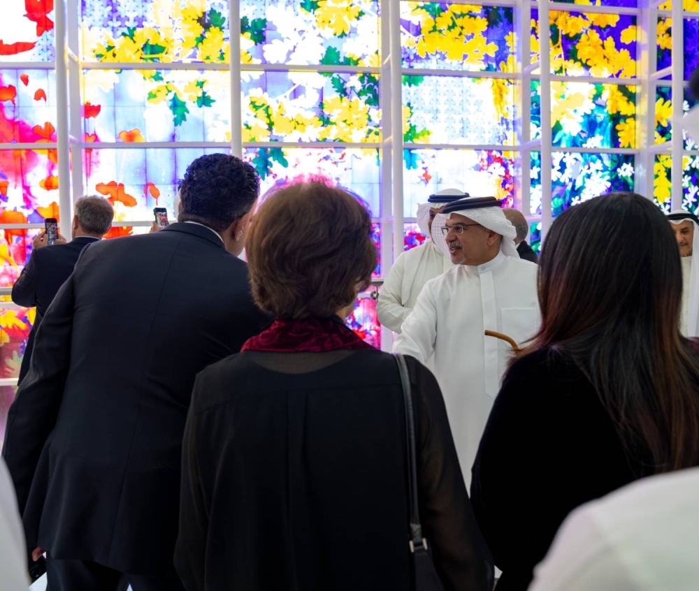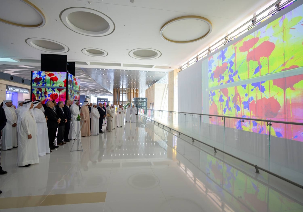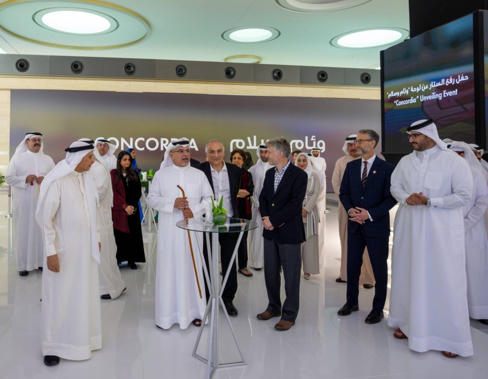 كما تضمن الحفل عرض فيديو تعريفي عن لوحة"وئام وسلام"، التي تُعد من أكبر تركيبات الزجاج المعشق في المنطقة، حيث تبلغ أبعادها 17 مترًا ارتفاعًا و34 مترًا عرضًا، بمساحة إجمالية تصل إلى 578 مترًا مربعًا.