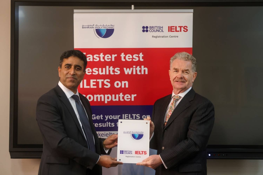 أبرمت كلية البحرين التقنية (بوليتكنك البحرين) مذكرة تفاهم مع المجلس الثقافي البريطاني، تهدف إلى اعتماد بوليتكنك البحرين مركزًا للتسجيل لاختبار IELTS، ومركزًا للاختبارات المغلقة.