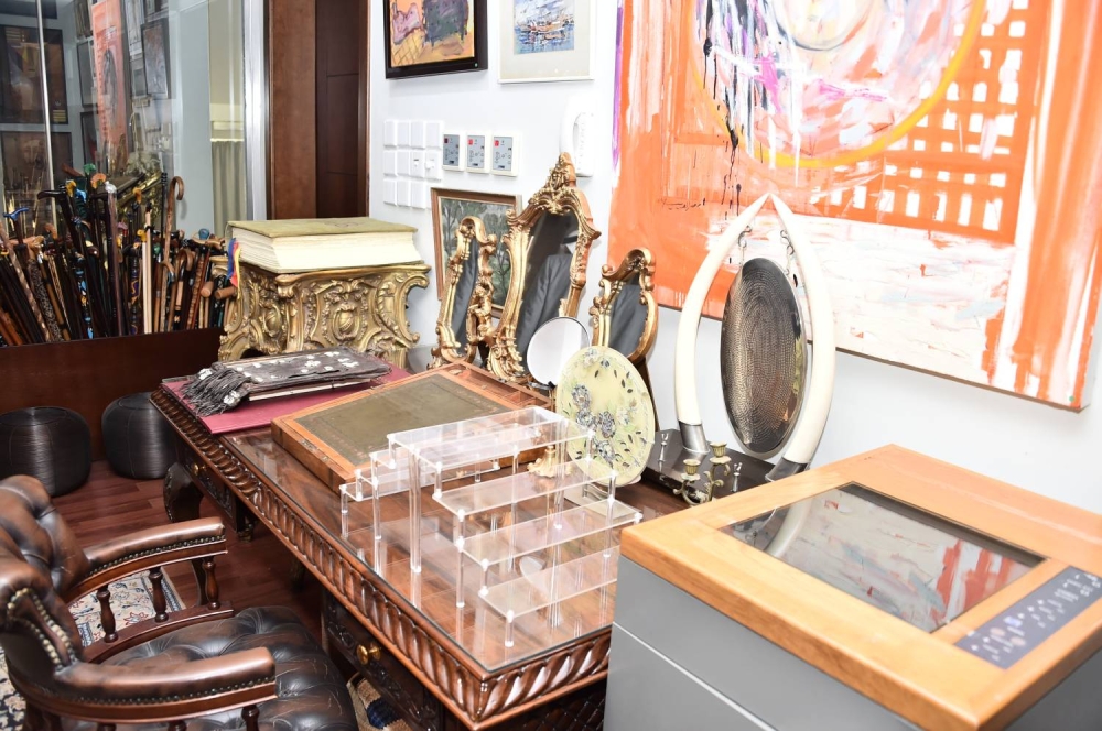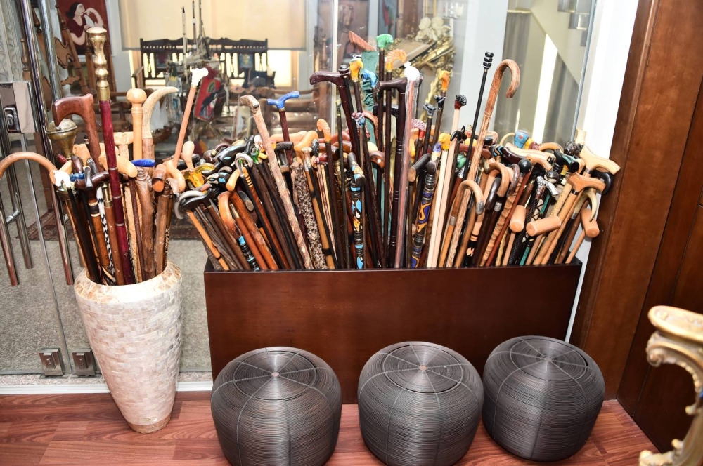 وقال لـ"الوطن": "فكرت في مكان أسكن فيه مع زوجتي بعد أن يتزوج أولادي، ويكون فيه مكتبي، إضافة إلى مكان أعرض فيه هذه الأشياء التي جمعتها على مدار أكثر من 20 عاماً، فهناك عشرات اللوحات فنية من مختلف الثقافات، وسجاد من مختلف البلدان، إضافة إلى عدد كبير من السيوف والمسابح والخواتم والعكاكيز، فضلا عن بعض الأجهزة القديمة التي انقرضت وحلت محلها آلات جديدة، مثل الكاميرات وآلات طابعة وهواتف وغير ذلك".