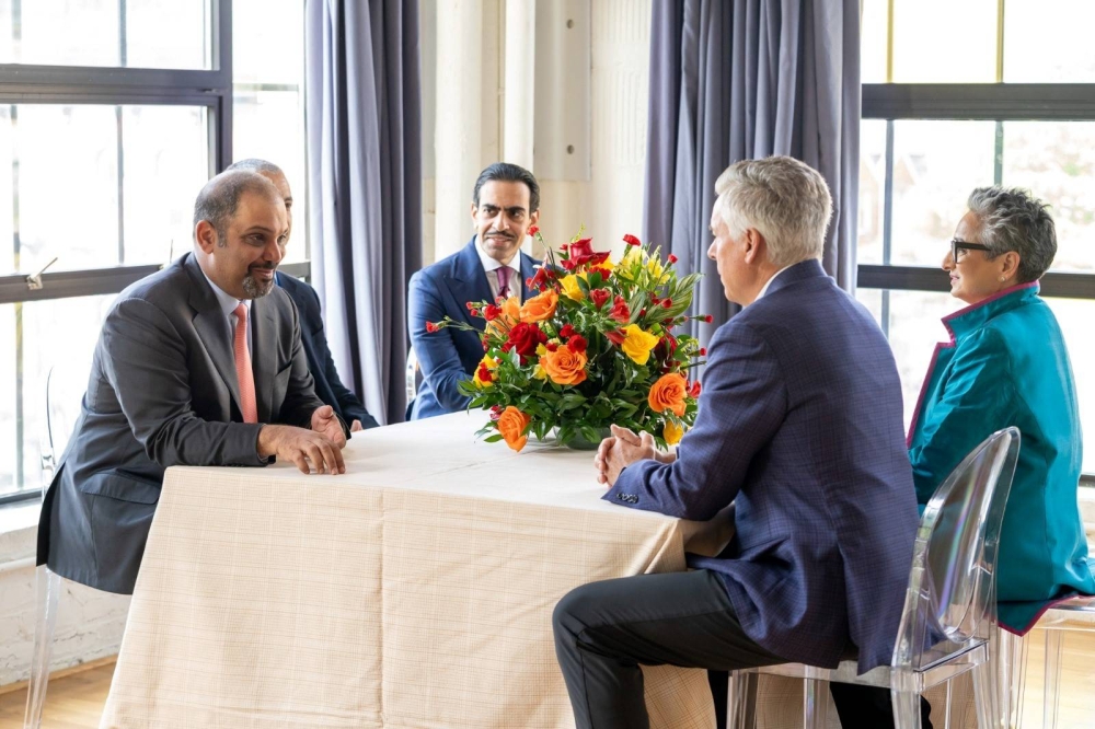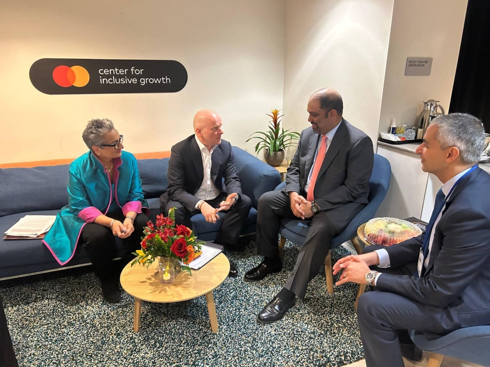 والتقى على هامش القمة جلالة الملكة ماكسيما ملكة هولندا، والسيد مايكل مايباخ الرئيس التنفيذي لماستركارد, والسيد جون هانتسمان نائب رئيس مجلس الادارة لماستركارد، والسيدة شامينا سنغ رئيس مركز النمو الشامل لشركة ماستركارد.