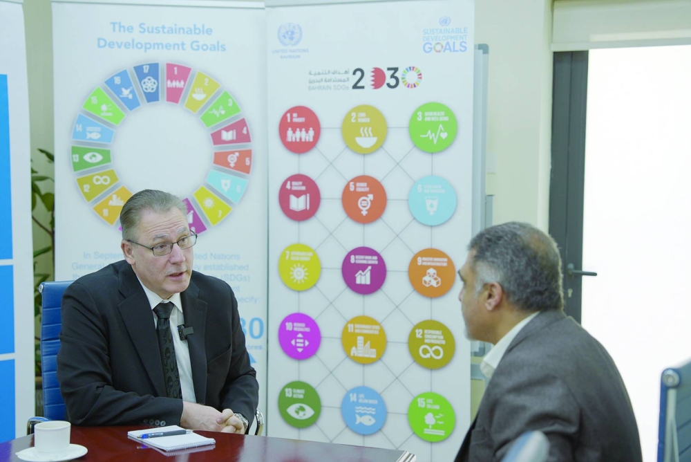 وأضاف الدردري -حيث يعد أرفع مسؤول تنموي في الأمم المتحدة في المنطقة العربية- في حوار شامل مع «الوطن» أن البحرين تتمتع بآفاق جديدة للتنمية الاقتصادية والاجتماعية، موضحاً أنه ناقش خلال زيارته المملكة ثلاثة مشاريع إقليمية تسعى الأمم المتحدة لإطلاقها من البحرين؛ منصة التمويل الأخضر، ومنصة إقليمية تربط الرقمنة والذكاء الاصطناعي بتنمية الشركات الصغيرة والمتوسطة، و»تحالف التكافل» لتوفير التأمين الإسلامي التكافلي لمائة مليون مزارع عربي.