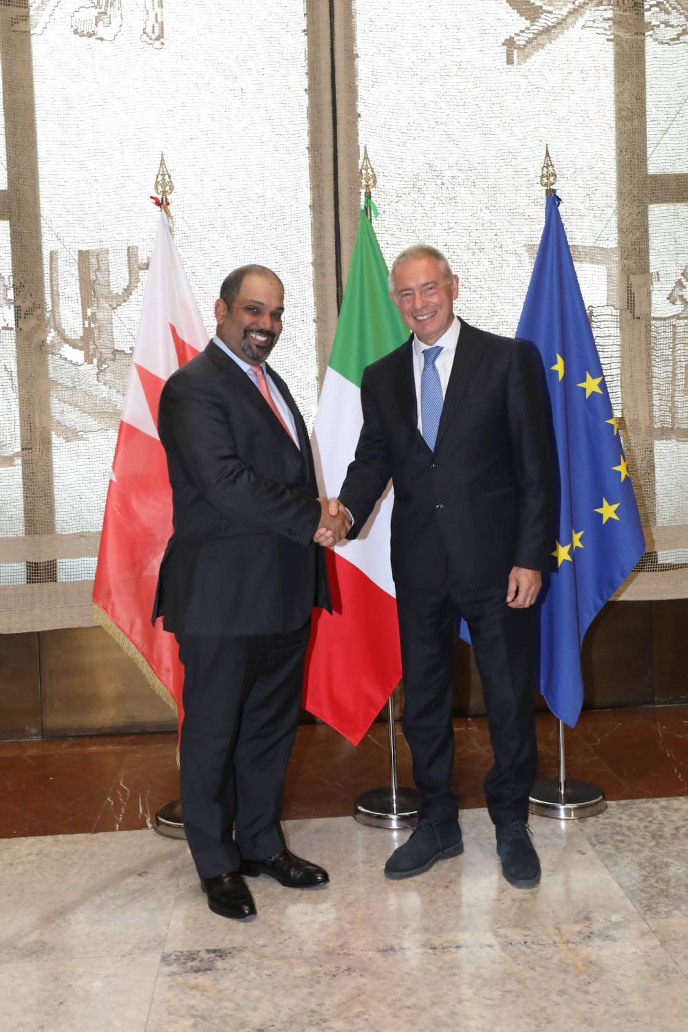 وخلال اللقاء تم استعراض مسارات التعاون المشترك والشراكات الاقتصادية والاستثمارية المتميزة بين مملكة البحرين والجمهورية الإيطالية، مشيرًا معاليه إلى ما وصلت إليه العلاقات البحرينية الإيطالية من تطورٍ ونمو في مختلف المجالات بما يلبي التطلعات والأهداف المشتركة.