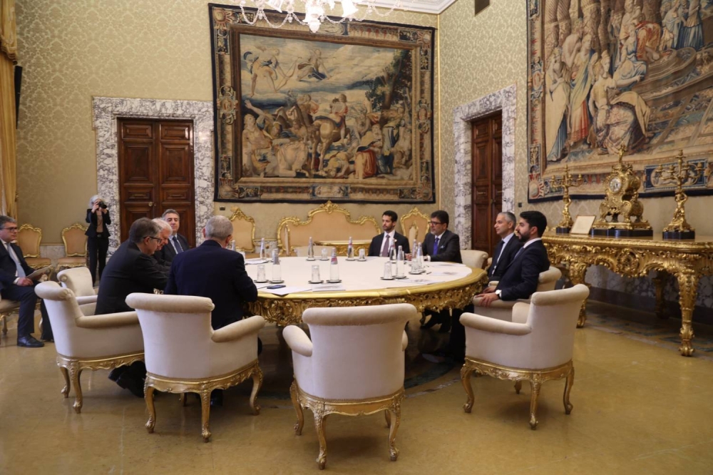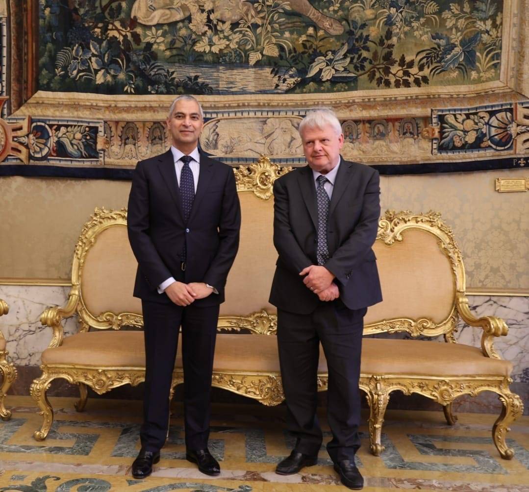 التقى السيد خالد إبراهيم حميدان محافظ مصرف البحرين المركزي، بحضور السيد أسامة عبد الله العبسي سفير مملكة البحرين لدى جمهورية إيطاليا وعددٍ من المسؤولين، السيد لويجي فيديريكو سينيوريني النائب الأول لمحافظ البنك المركزي بجمهورية إيطاليا، وذلك في إطار الزيارة الرسمية لوفد مملكة البحرين الذي يزور الجمهورية الإيطالية الصديقة لتعزيز العلاقات الاقتصادية والتجارية بين البلدين.