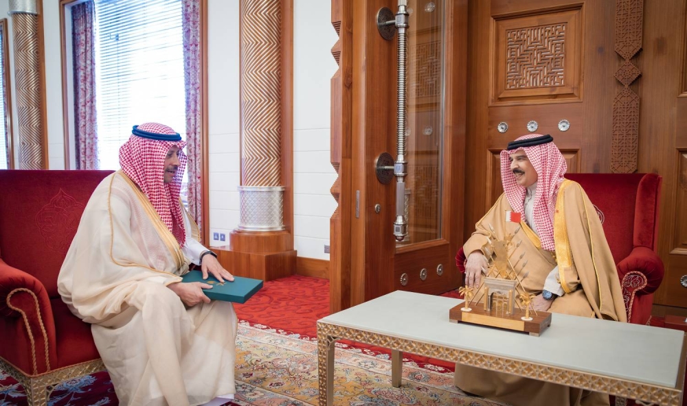 وقد سلم الرسالة إلى جلالة الملك المعظم سعادة السفير نايف بن بندر السديري سفير المملكة العربية السعودية لدى مملكة البحرين خلال استقبال جلالته له في قصر الصافرية هذا اليوم.