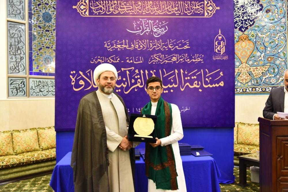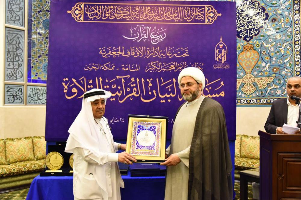 جاء ذلك خلال رعايته لختام مسابقة البيان القرآنية وإعلان الفائزين التي ينظمها مأتم العجم الكبير في المنامة برعاية ودعم من إدارة الأوقاف الجعفرية، وتكريم الفائزين في مسابقة البرهان في تفسير القرآن التي نظمتها جمعية البيان في مسجد السيد هاشم التوبلاني، وذلك بحضور رئيس مأتم العجم الكبير الوجيه محمد عباس بلجيك، ونائب رئيس مجلس الأوقاف الجعفرية الدكتور عبدالحسن الديري وعدد من أعضاء مجلس الإدارة والقائم بأعمال مدير إدارة الأوقاف الجعفرية السيد علي ميرزا خميس وعدد من المدعوين.وشهدت مسابقة البيان جولة التصفيات النهائية مساء يوم الخميس الماضي في مأتم العجم الكبير بمشاركات واسعة ومتنوعة من مختلف الفئات العمرية من مختلف مناطق البحرين وقراء المملكة العربية السعودية، وأعلنت لجنة التحكيم أسماء الفائزين في المسابقة عن فئتي الشباب والأشبال حيث تصدر القارئ السيد محمد عبد الهادي من المملكة العربية السعودية الشقيقة فئة الشباب بالمركز الأول وجاء القارئ صادق عبدالله في المركز الثاني وفي المركز الثالث القارئ مصطفى محمود، أما فئة الأشبال فقد جاء القارئ عبدالله البناء في المركز الأول وفي المركز الثاني جاء القارئ أحمد سلطان، فيما شهدت مسابقة البرهان في تفسير القرآن تنافس 30 متسابقاً من مختلف المحافظات، وجاء في المركز الأول المتسابق محمد ميرزا خليل الريس، وفي المركز الثاني عبدالشهيد جاسم عيسى، وفي المركز الثالث محمد شاكر علي جاسم.
