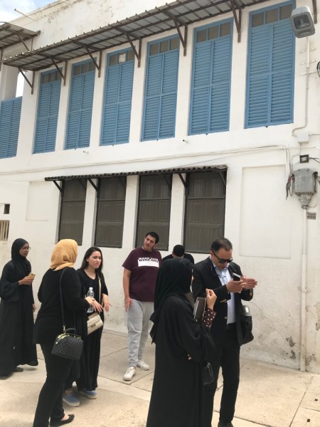 زار طلبة هندسة التصميم الداخلي بالجامعة الخليجية مركز الشيخ إبراهيم بن محمد آل خليفة للثقافة والبحوث بصحبة رئيسة قسم الهندسة المعمارية والتصميم الداخلي د. أسيل العياش وأستاذ القسم د. أنيس سيملالي، في رحلة تعليمية نظمها قسم الهندسة المعمارية والتصميم الداخلي بالجامعة بغرض التعرف على التراث المعماري لهذا المركز الذي يدمج بين التراث والحداثة من حيث العمارة الداخلية والخارجية للمركز.وهدفت هذه الزيارة إلى تعريف طلبة هندسة التصميم الداخلي على أهم العناصر والأسس المعمارية والتصميمية ومواد البناء المستعملة في الماضي والحاضر، شرح التصميم الهندسي المعتمد قديمًا بالإضافة إلى التعرف على أهم معالم البحرين المعمارية التراثية مما يعطي الطلبة تصورًا واضحًا عن الأساليب المعمارية والهندسية المستخدمة في المركز التي يمكنهم من خلالها استنباط أفكار التصميم التي تساعدهم في مشاريعهم في مقرري التصميم الداخلي وإعادة ترميم الفضاءات الداخلية.وخلال الزيارة، تم أخذ الطلبة في جولة تعريفية للعديد من المباني والفضاءات الداخلية المتواجدة في المركزمنها: الفضاءات السكنية التراثية والفضاءات الثقافية.وقالت رئيس قسم الهندسة المعمارية والتصميم الداخلي بالجامعة الخليجية د. أسيل العياش: "إن هذه الزيارة تأتي في إطار حرص الجامعة على تعريف الطلبة بأهم المعالم المعماية التراثية في البحرين مما يعمق الولاء والمواطنة في أنفسهم بالإضافة إلى انتهاز الفرصة والتعلم من خلال المشاهدة الواقعية للمواقع المعمارية ذات الفضاءات الداخلية".وأكد د. أنيس سيملالي على أهمية الزيارات الميدانية لطلبة هندسة التصميم الداخلي حتى يتمكنوا من الإطلاع على الموروث الحضاري البحريني ومشاهدة روعة العناصر المعمارية التراثية مثل الزخارف والأقواس الإسلامية التي صُمِمت بشكل هندسي مميز.وقالت طالبة هندسة التصميم الداخلي بالجامعة الخليجية ندى سامي:" نشكر القسم والجامعة على إتاحة هذه الفرصة لنا للتعرف على هذا البناء الهندسي المتميز ونشيد بالدور الذي يقوم به قسم هندسة التصميم الداخلي والعمارة في تنويع أساليب تعليمنا بكافة الطرق والوسائل الممكنة وهو النهج السليم حتى لا يُصاب الطالب بالملل والرتابة أثناء دراسته".