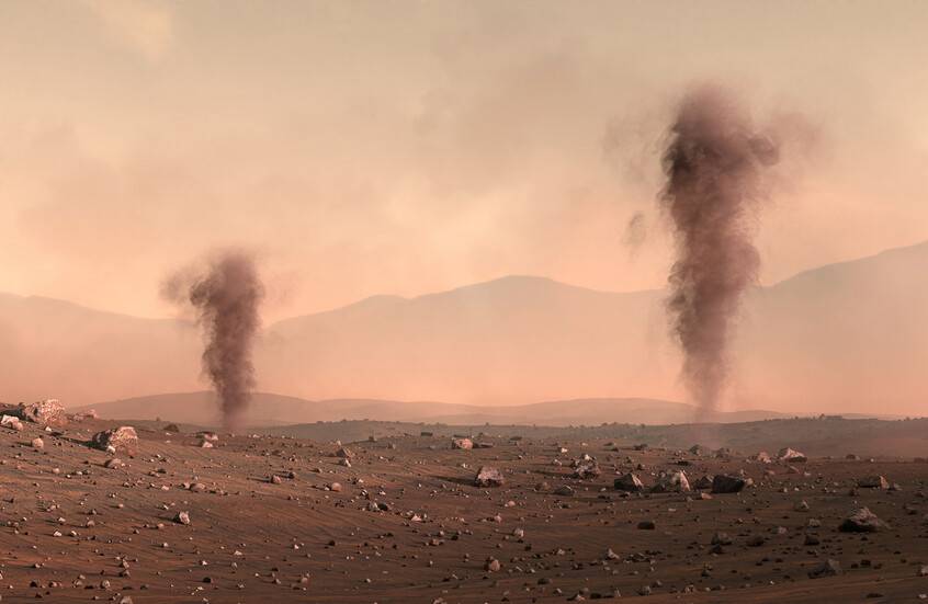 التقط مسبار "بيرسيفيرانس" التابع لوكالة ناسا مشهداً نادراً لما أطلق عليه "العفاريت الغبارية" على سطح المريخ، وهي دوامات هوائية شديدة مملوءة بالغبار.