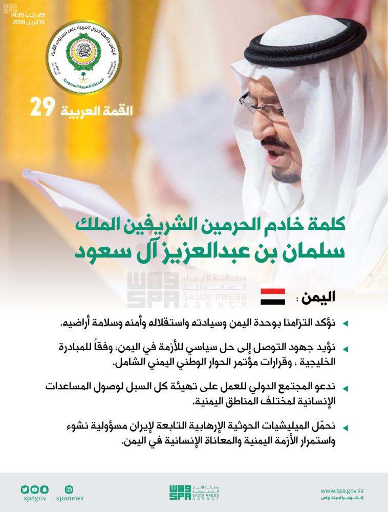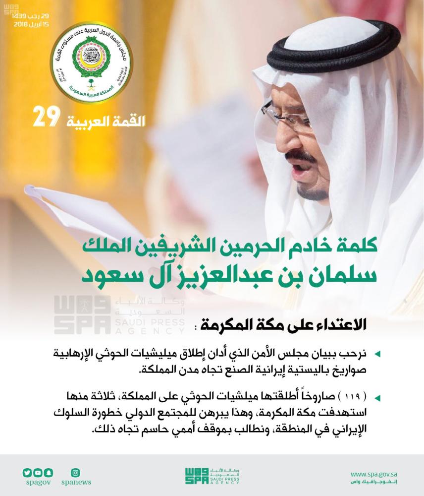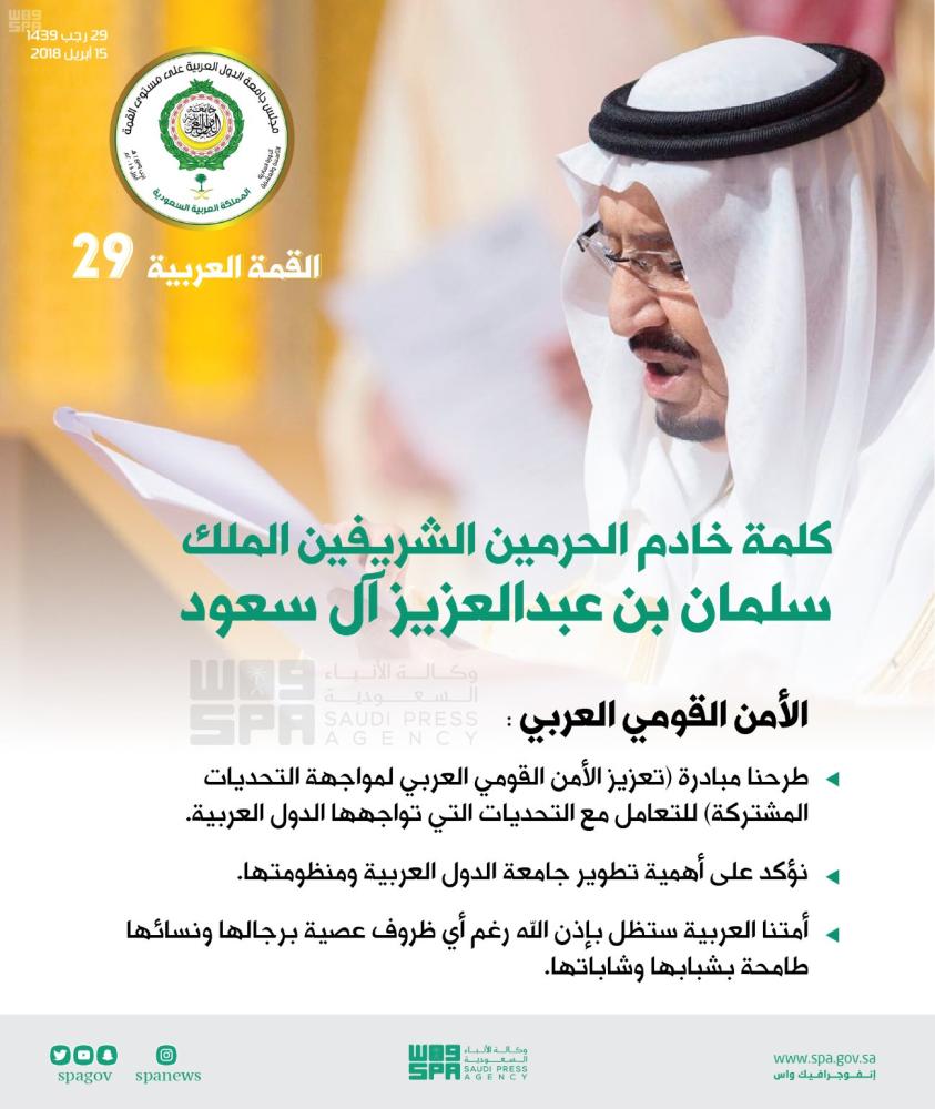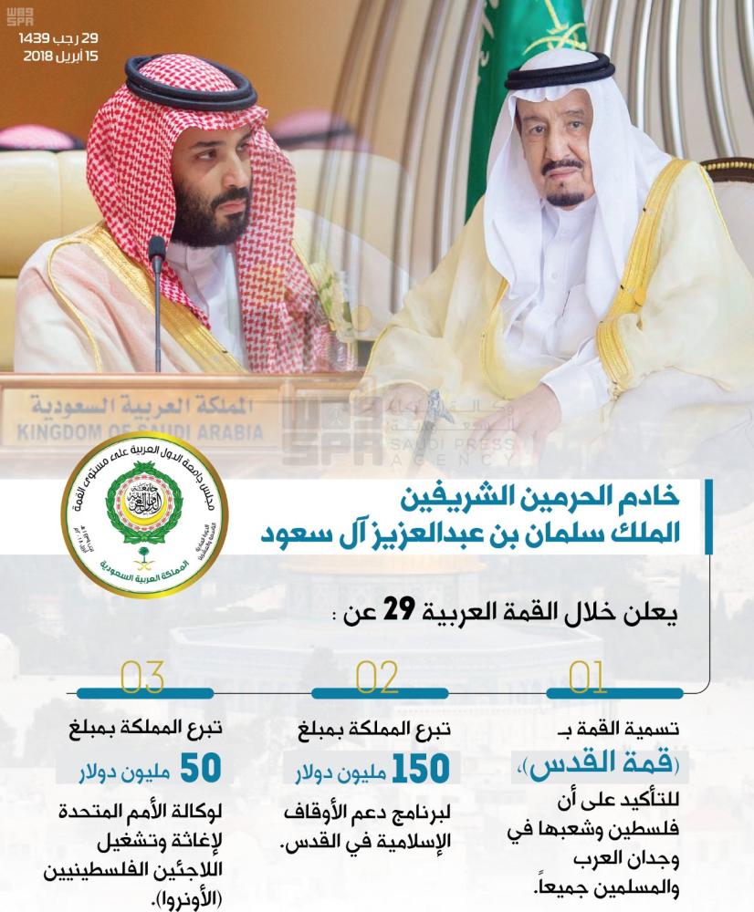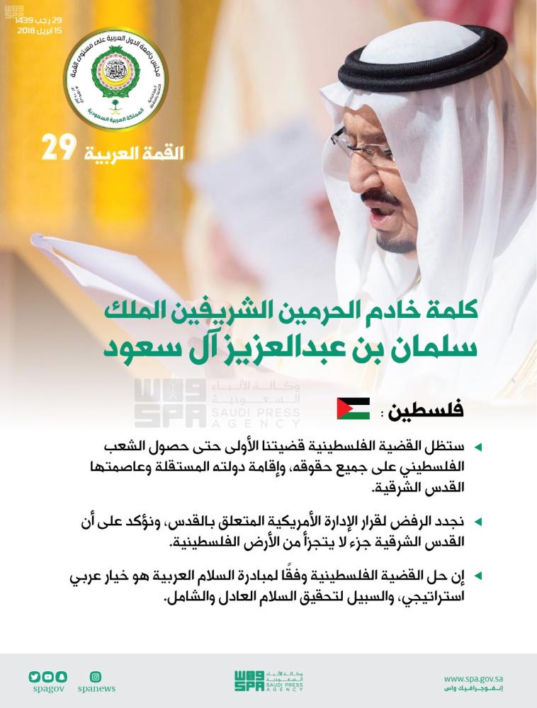بالإنفوغراف.. كلمة خادم الحرمين الشريفين في القمة العربية الـ 29.. "قمة القدس"
