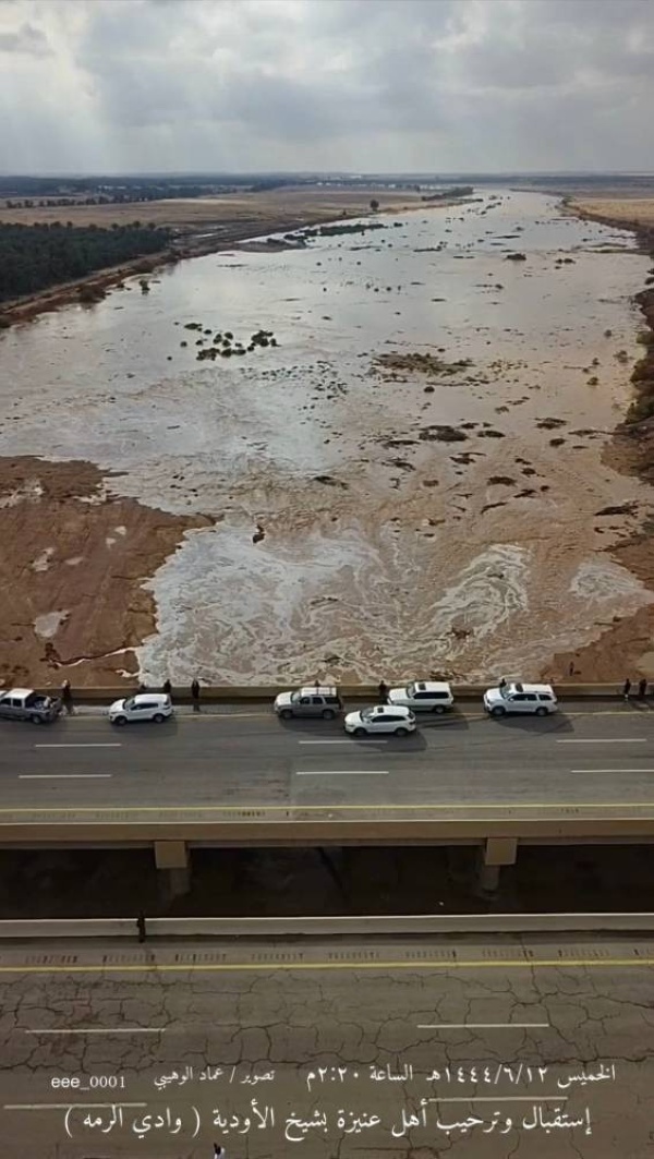 في منظر مهيب، ظهر وادي الرمة الملقب بـ"شيخ أودية السعودية"، متدفقا بمياه الأمطار خلال وصوله غرب محافظة عنيزة بالقصيم، وسط تواجد أمني من مختلف القطاعات العسكرية لتنظيم الحركة المرورية.وتناقل أهالي القصيم، صوراً لجريان الوادي ولحظة وصوله المنطقة، بعد أن أسهمت حالة مدرار المطرية بجريانه.لأول مرة منذ سنواتويعد الوادي منتزهاً عاماً لأهالي المنطقة، بعد أن ردد الكثيرون بأنها المرة الأولى التي يفيض فيها الوادي منذ 14 عاماً.إلى ذلك وثق المصور الضوئي "عبد الله الصبيعي" هذا الحدث التاريخي لوادي الرمة وسط احتفاء الأهالي الذين جاؤوا ملتفين حول جريان المياه.بدوره، أكد خبير الطقس الدكتور خالد الزعاق، أن أركان جريان وادي الرمة، تحققت، حيث كان آخر نهوض للوادي في عام 1440هـ بعد أن هطلت أمطار غزيرة على القصيم آنذاك.أكبر وأطول أودية الجزيرة العربيةوكان مقطع فيديو نشرته إمارة المنطقة، أظهر جريان الوادي عبر جسر الطريق الممتد من محافظة النبهانية إلى القيصومة، فوادي الرمة من أهم الظواهر الجيومورفولوجية في هضبة نجد.ويعتبر وادي الرمة أكبر وأطول أودية الجزيرة العربية، ويقوم بتصريف سيول هضبة نجد المتبلورة (الواقعة فوق الدرع العربي) عبر شبكة كثيفة ومعقدة من الروافد والشعاب.ويقع معظم حوض وادي الرمة في منطقة القصيم، بينما تقع أطرافه جنوب منطقة حائل، وشرق منطقة المدينة المنورة، وشمال غربي منطقة الرياض، كما أن حوض وادي الرمة يمتد غرباً من حرات بركانية سوداء ترتفع عن سطح البحر بأكثر من 1300م وبذلك يبلغ طول الوادي 600كم تقريباً.كما يبلغ عرض وادي الرمة في المتوسط 2كم في محيط عقلة الصقور، ثم يتسع ليبلغ حوالي 3كم بين الجبلين (أبانات الأحمر وأبانات الأسمر)، ثم 3.5كم غرب الرس، وما بين الرس والبدائع 5كم، ثم يدخل مرحلة عنق الزجاجة بعرض 300م فقط عند منطقة الخنقة حيث زحفت رمال الشقيقة على مجرى الوادي.ويتأثر الوادي بتغير المناخ العالمي، فقد يقود تغير المناخ العالمي إلى هطول أمطار غزيرة ومتواصلة ومتكررة في وقت قصير وخلال موسم واحد في أرض العرب، منها أن وادي الرمة قد يفاجئ الجميع على حين غرة ويجري خلال الموسم الواحد أكثر من مرة بكامل طاقته أو يزيد، مما يجعل الجريان السطحي للوادي يفيض عن مجراه ويملأ كل قيعانه وفياضه الشرقية.