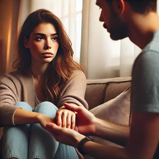 الخطوة الأولى للتعامل مع الغيرة هي الاعتراف بها فإذا شعرت أن زوجتك تغار، لا تحاول إنكار مشاعرها أو الاستخفاف بها وبدلاً من ذلك، استمع لها باهتمام عندما تعبر عن مخاوفها حتى لو بدت غير منطقية بالنسبة لك فيجب أن تظهر أنك متفهم لمشاعرها فذلك يساعدها على الشعور بالأمان.