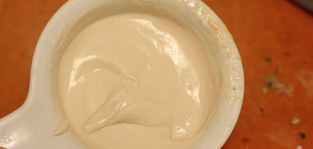 1. نخلط الطحينة مع الزبادي والثوم جيدًا.