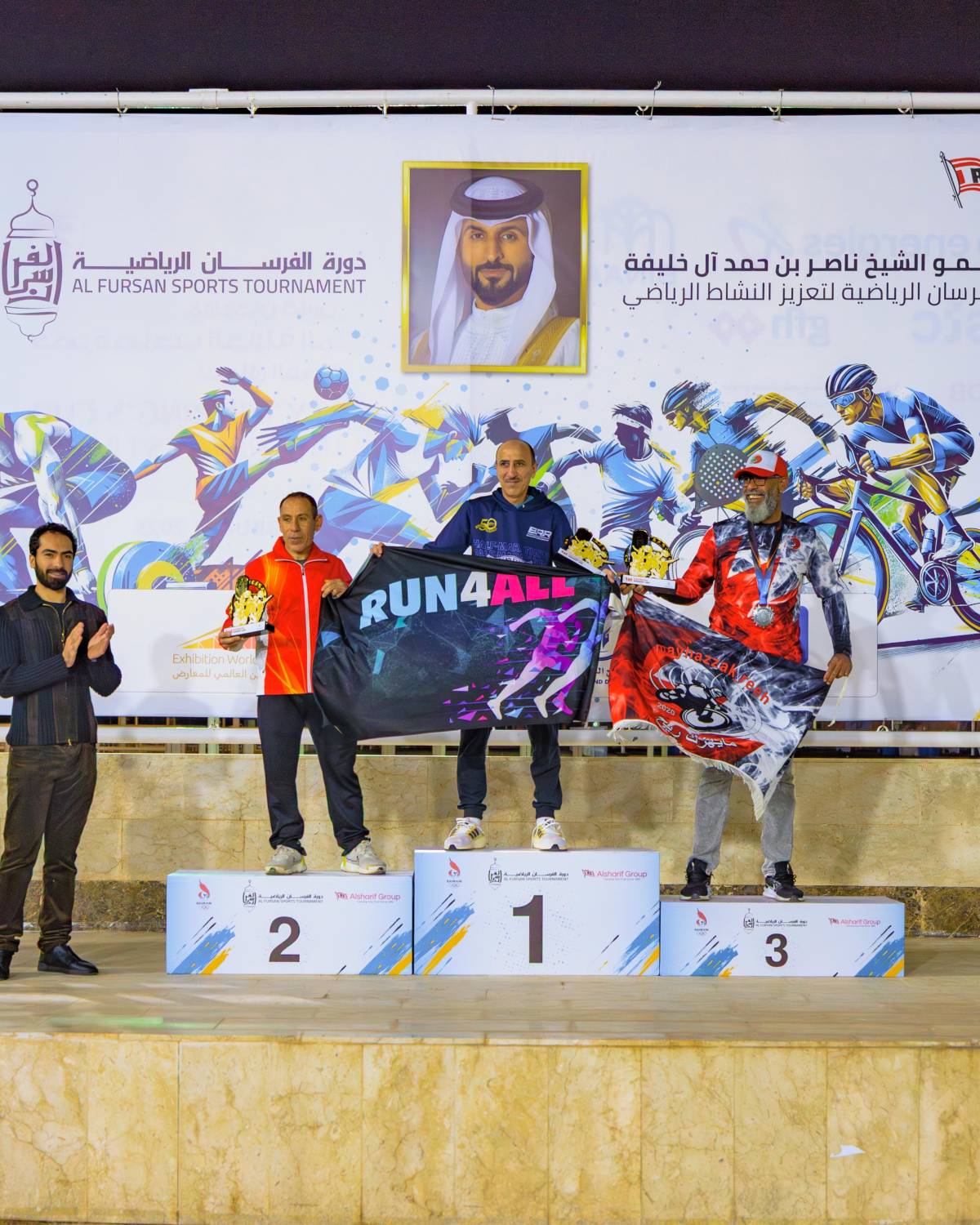 اقامت اللجنة المنظمة العليا لدورة الفرسان الرياضية، حفل تتويج الفائزين بسباق الجري بحضور عيسى آل شريف عضو مجلس إدارة مجموعة آل شريف الراعي الذهبي للدورة وذلك في قرية البحرين للقدرة.وشهد حفل الختام لمنافسات الجري، حضورا واسعا من الفائزين بالمراكز الأولى، إضافة إلى أولياء أمور الأطفال الفائزين وسط فرحة كبيرة من الأبطال الذين تقلدوا الميداليات الملونة في مختلف الفئات لمسافة 10 كم للرجال والسيدات، و5 كم للرجال والسيدات، إضافة إلى سباق ذوي الهمم، وسباق الكراسي المتحركة، وسباقات الأطفال.وأحرز المتسابق عبدالغني محمد المركز الأول في سباق 10 كم للرجال، والمركز الثاني جاء يوسف ناصر، والمركز الثالث شفيق صالح، أما في فئة السيدات لنفس المسافة فازت بالمركز الأول مريم الدوسري، والمركز الثاني نجلاء فتحي، والمركز الثالث سمرة الراشدي.أما في سباق 5 كم، استطاع المتسابق موسى كاريج من إحراز المركز الأول، والمركز الثاني محمد ناصر، والمركز الثالث عدنان خالد، وفي نفس المسافة للسيدات فازت بالمركز الأول وفاء زروال، والمركز الثاني، والمركز الثالث رواية السطي.وفي سباق الكراسي المتحركة، حقق ناصر علي المريسي المركز الأول، والمركز الثاني أحمد نادر، والمركز الثالث موسى محمد.كما جرى تتويج الفائزين بمختلف الأعمار الأخرى الفائزين بالمراكز الأولى في مسافتي 10 كم و5 كم للرجال والسيدات، إضافة إلى تتويج الفائزين في سباق الأطفال.من جانبه، تتواصل منافسات دورة الفرسان الرياضية حيث ستنطلق الأحد منافسات رياضة البادل في ملاعب الزلاق، ومباريات ربع نهائي كرة القدم الشاطئية، حيث سيلتقي اتحاد الصم مع مركز شباب المحرق، ونادي داركليب سيواجه قلعة النجوم، ومركز شباب أبوقوة سيلعب ضد نادي العكر، وKHK سيواجه مركز عالية للتدخل المبكر، إضافة إلى إقامة نهائي لعبة شد الحبل، علما أن جميع المنافسات تقام في قرية البحرين للقدرة.