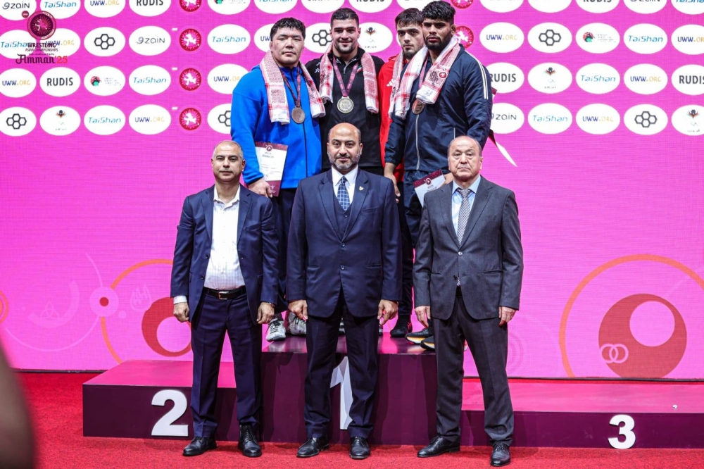 سجل المنتخب الوطني للمصارعة مشاركة إيجابية في منافسات بطولة آسيا للمصارعة، والتي احتضنتها مؤخرا العاصمة الأردنية عمّان، وذلك بعد أن حقق المركز الثاني والثالث في هذه البطولة، التي شهدت مشاركة 370 لاعب ولاعبة يمثلون 39 دولة من قارة آسيا.وقد حقق المصارع خضير سيف الدينوف المركز الثاني والميدالية الفضية في منافسات وزن 79 كيلوجرام، فيما أحرز المصارع محمد رسول اسلويف المركز الثالث والميدالية البرونزية في منافسات وزن 74 كيلوجرام وأحرز المصارع شاميل شاريبوف المركز الثالث والميدالية البرونزية في منافسات وزن 125 كيلوجرام.من جهته، قال رئيس الاتحاد البحريني للمصارعة عبدالرضا عبدالحسين حاجي: "إن المنتخب الوطني للمصارعة نجح في تحقيق نتيجة إيجابية في باكورة مشاركاته في عام 2025، حيث تأتي هذه النتيجة تجسيدا للرعاية والدعم الذي توليه القيادة الرشيدة للرياضة والرياضيين، إلى جانب الدعم الذي يقدمه سمو الشيخ خالد بن حمد آل خليفة النائب الأول لرئيس المجلس الأعلى للشباب والرياضة رئيس الهيئة العامة للرياضة رئيس اللجنة الأولمبية البحرينية للرياضة البحرينية لاسيما الألعاب القتالية، والتي دفعت بهذه الرياضات بما فيها المصارعة لتحقيق الإنجازات وتبوأ مكانة متقدمة على المستوى القاري والدولي".وتابع: "كما أن لهذه النتيجة انعكاس واضح على ما يبذله سمو الشيخ سلمان بن محمد آل خليفة نائب رئيس الهيئة العامة للرياضة رئيس المجلس البحريني للألعاب القتالية، من جهود كبيرة في دعم جميع الاتحادات الوطنية المنضوية تحت مظلة المجلس، ودفعها لتطوير وارتقاء أدائها من خلال الخطط والبرامج، التي تسهم في تطور مستوى الألعاب القتالية ومنتسبيها، بما يحقق مزيدا من النجاحات لسجل الرياضة البحرينية".وقد أشاد رئيس الاتحاد البحريني للمصارعة بالمستوى الفني الذي قدمه لاعبو المنتخب في هذه المشاركة، والذين أثبتوا قدراتهم الفنية الكبيرة في المنافسة والوصول إلى منصة التتويج ورفع اسم وعلم مملكة البحرين عاليا في هذا المحفل القاري، متمنيا كل التوفيق والنجاح للمنتخب الوطني في المشاركات القادمة.