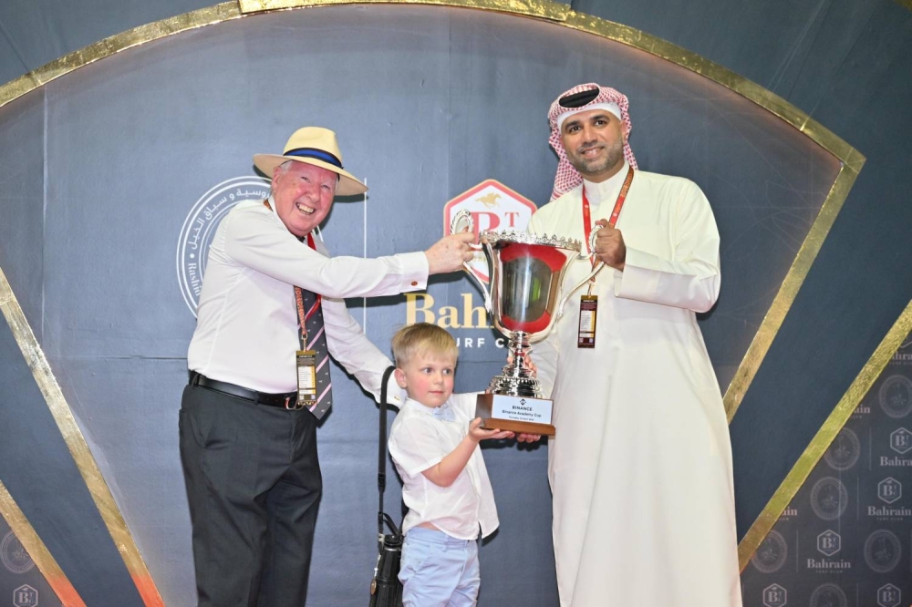 وقد جرى تتويج الفائزين بكؤوس “بينانس”، حيث تسلّم سمو الشيخ سلطان الدين بن محمد بن سلمان آل خليفة كؤوس الأشواط الثالث والرابع والتاسع من السيد تميم الموسوي، المدير العام لشركة “بينانس البحرين”، الذي بدوره سلّم كؤوس السباق للفائزين. حيث قدم كأس الشوط الأول إلى المضمر الفائز عبدالله كويتي، وكأسي الشوطين الثاني والخامس إلى المضمر الفائز ألن سميث، فيما قدّم كأس الشوط السادس إلى علي أصغر حسين، وكأس الشوط السابع إلى المالك الفائز جعفر مرزوق ، ثم سلم كأس الشوط الثامن إلى إيمان محمد خليل .